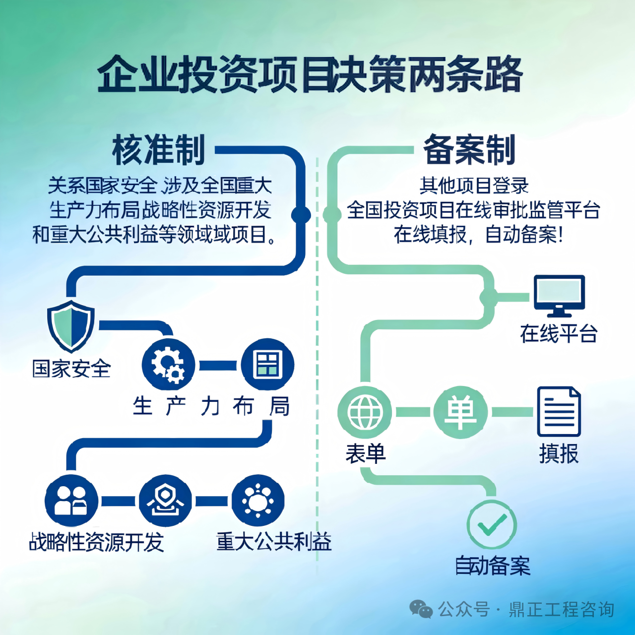 備案制:企業信息+項目名稱+建設規模+總投資+產業政策聲明(一頁備案表搞定)