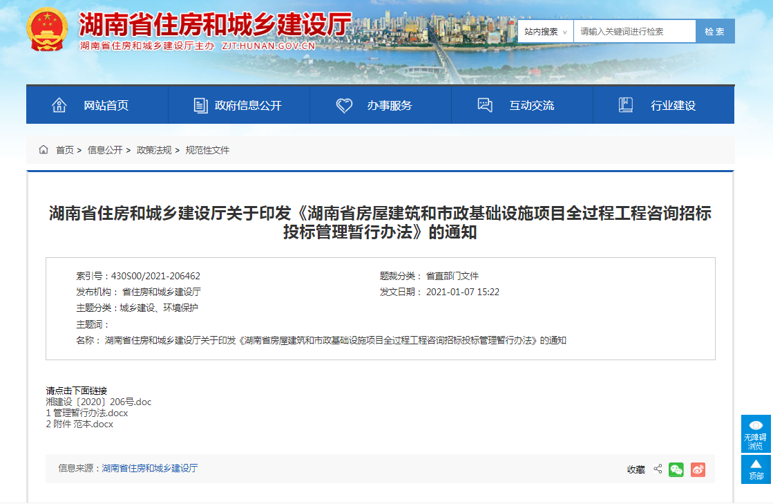 湖南省住建廳發文:房建和市政項目全過程工程咨詢招標投標管理暫行辦法,自2月1日起施行!