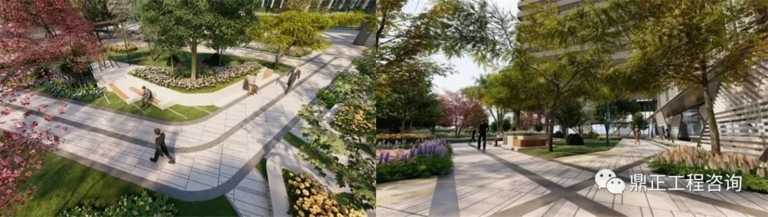 鼎正景觀設計內容:景觀園建及綠化工程,包括景觀廣場、步道、小品及園林植物設計,總設計面積近20000㎡。