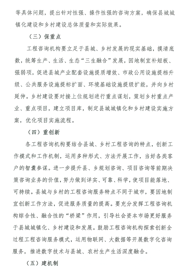 縣城城鎮化建設、鄉村建設是一項宏大的社會工程,需要整體的、長遠的規劃。特別是城鄉“二元”化結構較為明顯,大部分鄉鎮和村莊發展規劃欠缺,村落布局散亂,公共服務供給不足,嚴重制約了縣城、鄉村發展。規劃咨詢,注重規劃先行,因地制宜,可運用工程技術、科學技術、經濟管理和法律法規等多學科的知識與經驗,為縣城建設項目決策提供智力服務,解決縣城發展與定位問題,避免錯亂發展,無效競爭。