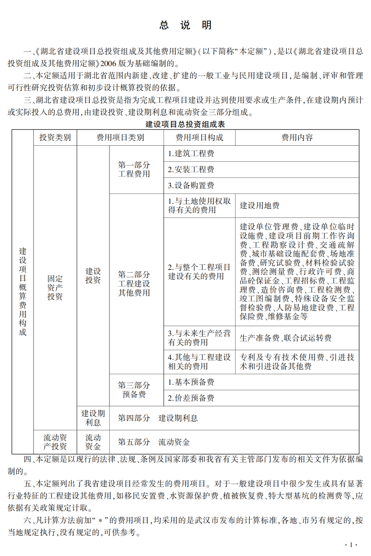 一、《湖北省建設工程概算定額及全費用基價表》是我省工程項目建設投資評審、編制設計概算和對設計方案進行技術經濟分析的依據。《湖北省建設項目總投資組成及其他費用定額》是編制、評審和管理可行性研究投資估算和初步設計概算投資的依據。