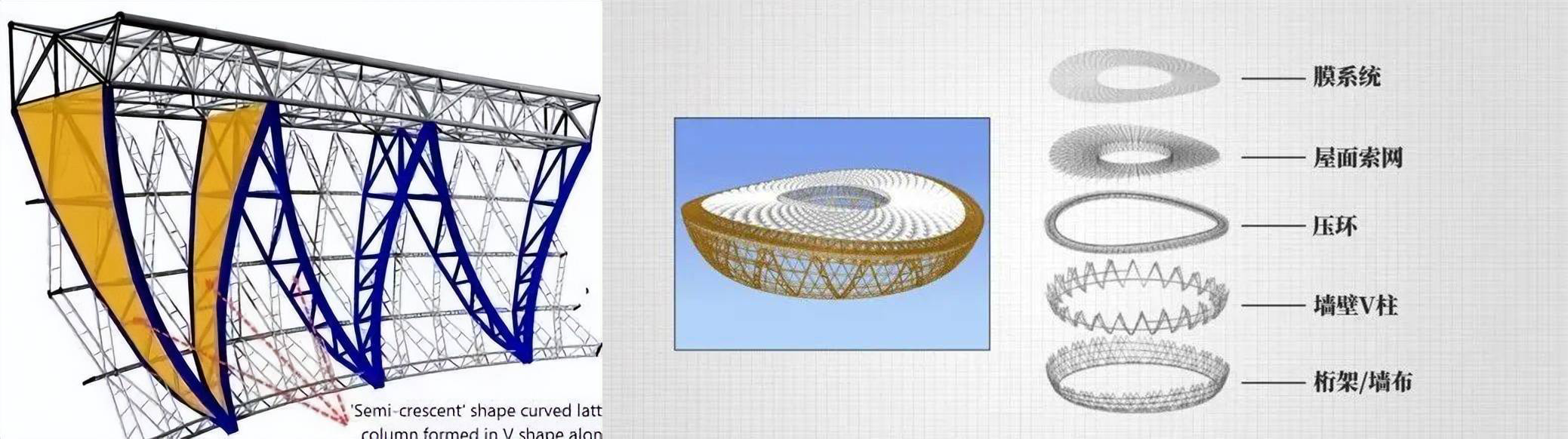 盧賽爾體育館是全球最大跨度雙層交叉索網屋面單體建筑,并且有著世界上最復雜的索膜結構體系,屋面索網結構跨度達274米,鋼結構高空吊裝最大的單體重達450噸,懸挑距離為76米,項目包含30多個專業大類,45個專項設計,99個電子系統,可以說是目前為止專業接口最多、技術最先進的體育場館。