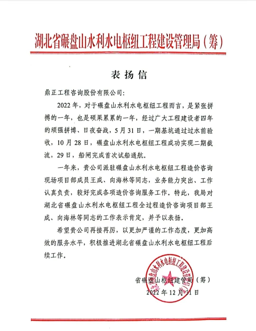 碾盤山水利水電樞紐工程,是國務院確定的172項節水供水重大水利工程之一。鼎正作為該項目的全過程造價咨詢單位,積極主動推進工程進度,在2022年度共計出具各類報告35份,助力碾盤山項目二期圍堰截流和船閘試通航的關鍵節點交付。工程變更往往帶來工程量與價的變化,從而影響工程造價,在全過程造價咨詢服務過程中,我們多次深入現場進行實地勘察計量,主動推進過程結算,及時處理施工過程中的變更簽證,并為帷幕化學灌漿費用節省工程投資的38%。同時,我們加強對各工程建設的事前、事中、事后監管,及時歸集整理項目相關技術經濟資料,做到“一戶一檔”,為項目穩步推進打下了良好基礎。
