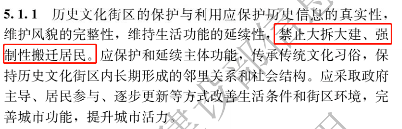 2、歷史文化街區的保護與利用應保護歷史信息的真實性,維護風貌的完整性,維持生活功能的延續性,禁止大拆大建、強制性搬遷居民。