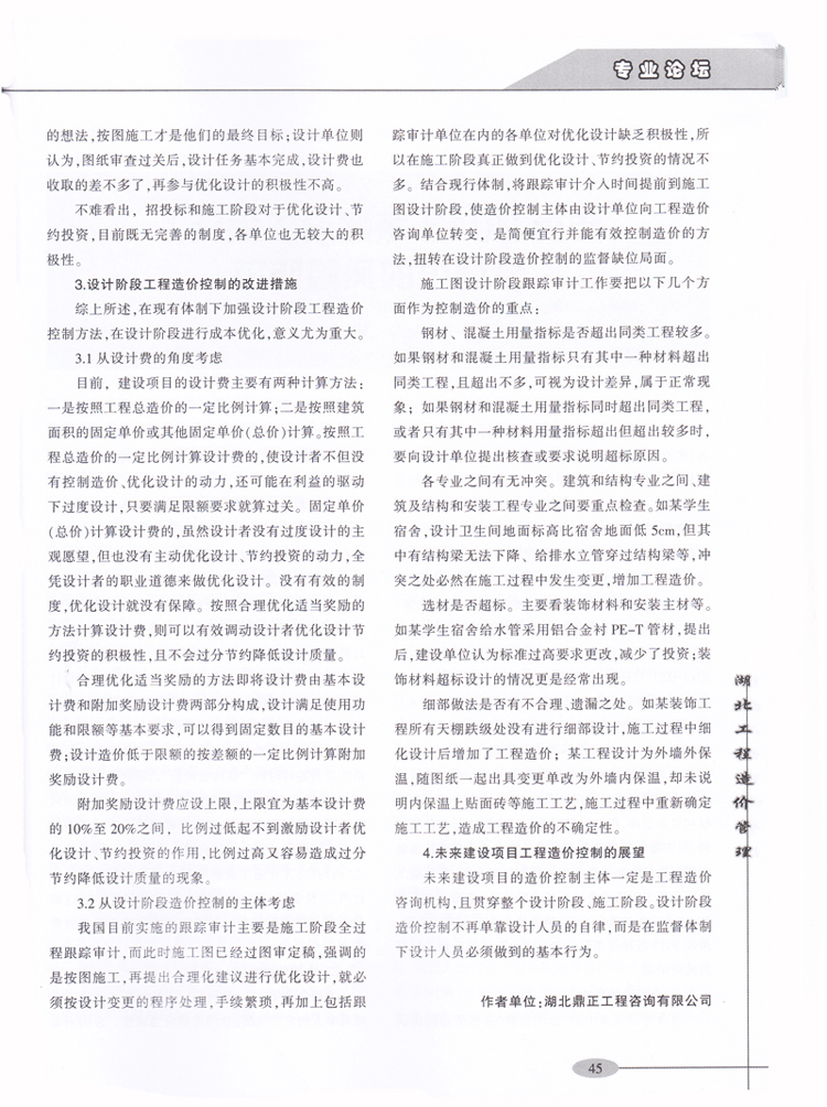 祝賀我司李光洲同志所著文章《淺談建設(shè)項(xiàng)目在設(shè)計(jì)階段的造價(jià)控制》在全國工程造價(jià)管理類優(yōu)秀期刊《湖北工程造價(jià)管理》2014年第4期“專業(yè)論壇”板塊發(fā)表。