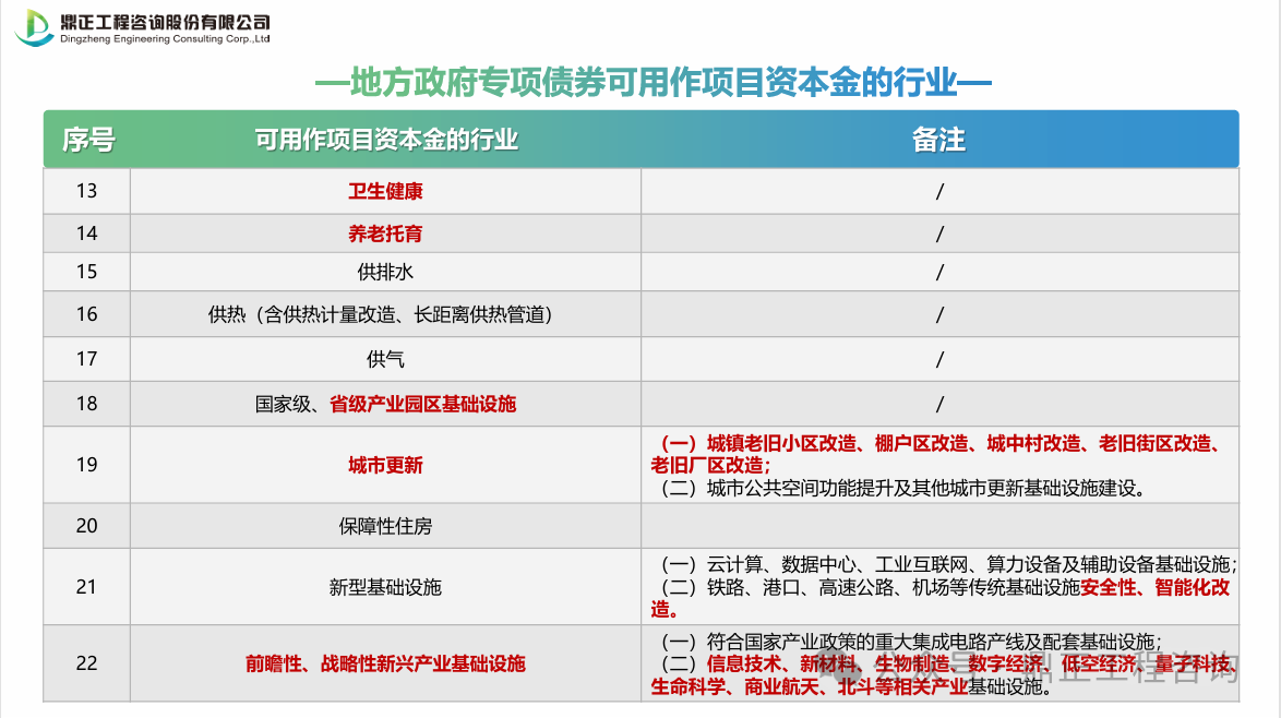 (2)資金投向:精準匹配專項債券可用作項目資本金的行業(yè),或項目未納入“負面清單”。