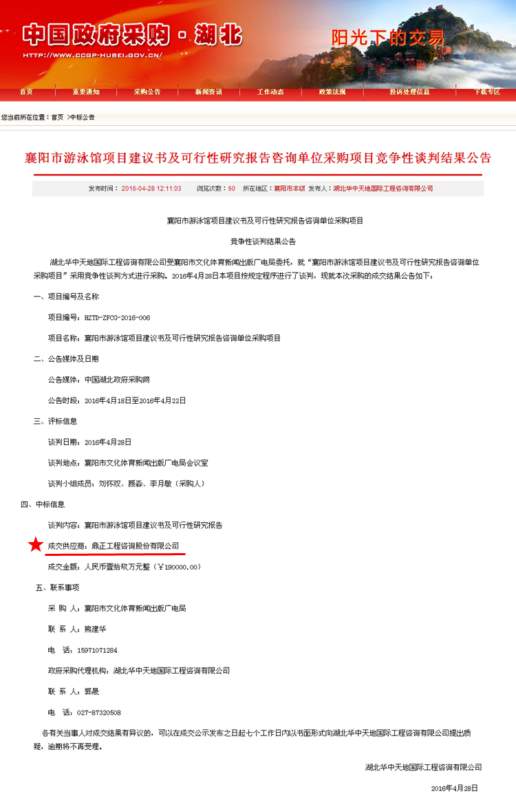 【經(jīng)營成果】我司中標(biāo)襄陽市游泳館項(xiàng)目建議書及可行性研究報(bào)告咨詢單位采購項(xiàng)目
