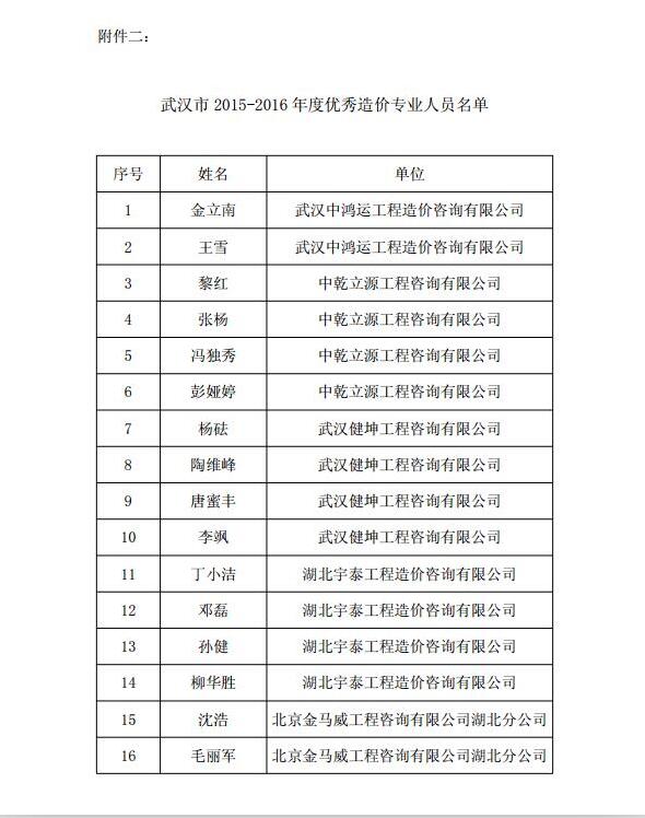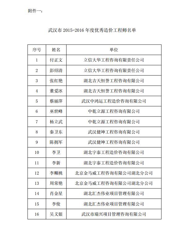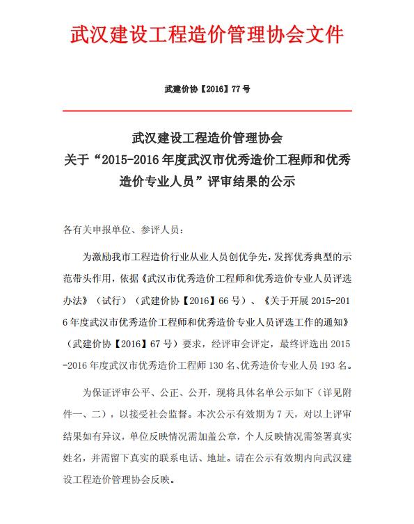 我司多名員工榮獲2015-2016年度武漢市“優(yōu)秀造價(jià)工程師”、“優(yōu)秀造價(jià)專業(yè)人員 ”稱號(hào)