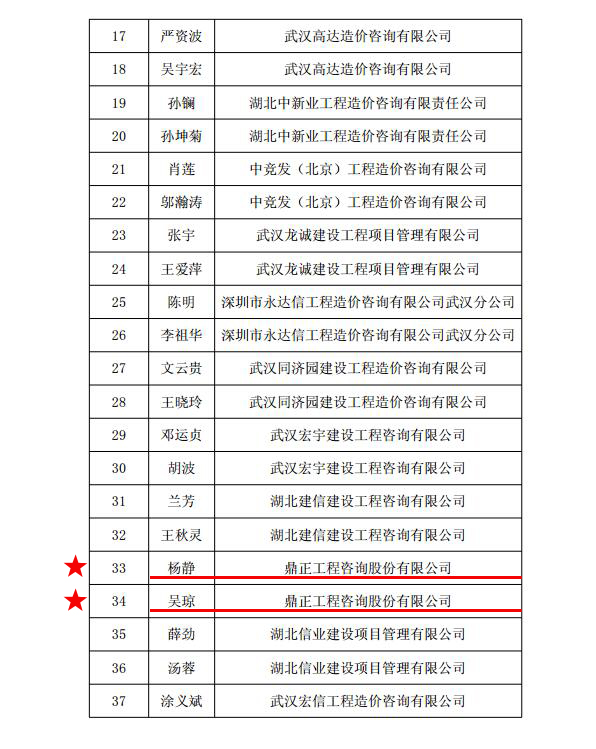 根據(jù)武建價(jià)協(xié)【2016】77號(hào)文件公示,我司員工楊靜、吳瓊榮獲2015-2016年度武漢市"優(yōu)秀造價(jià)工程師"稱號(hào),黃建新、張恒、吳輝、彭萍榮獲2015-2016年度“優(yōu)秀造價(jià)專業(yè)人員”稱號(hào)。此次榮譽(yù)的獲得,既是對(duì)我司同志工作的肯定,也展示了鼎正人愛(ài)崗敬業(yè)、爭(zhēng)創(chuàng)一流的精神風(fēng)貌。鼎正公司將以更加昂揚(yáng)的斗志和飽滿的熱情,服務(wù)于企業(yè)、服務(wù)于社會(huì)!