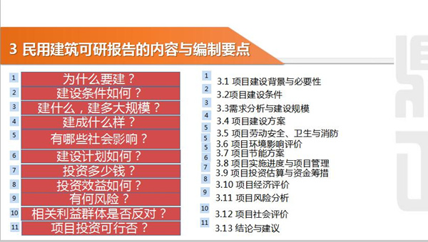 上午,來自工程咨詢一部的余國秋做了《民用建筑可行性研究報告編制要點與實務(wù)》的主題分享。余國秋從可行性研究基本認(rèn)識、民用建筑可行性研究報告編制要點、可行性研究實務(wù)三個方面展開,重點闡述了做可行性研究報告的必要性,怎么做可行性研究報告。