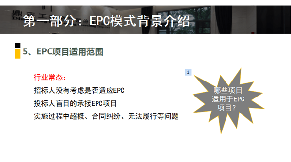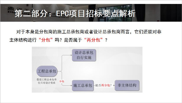 下午,采購與招標(biāo)代理事業(yè)部的潘勝強帶來了《EPC項目招標(biāo)實務(wù)》的主題培訓(xùn)。潘勝強首先介紹了EPC模式的背景,包含工程總承包的主要模式,EPC發(fā)展?fàn)顩r,EPC項目適用范圍,招標(biāo)流程等多方面內(nèi)容。隨后對EPC項目招標(biāo)要點進行了解析,結(jié)合相關(guān)政策文件對工程總承包發(fā)包階段和條件、資格條件的設(shè)置、EPC項目前期單位是否可以參與后期投標(biāo)、合同計價方式、分包原則進行了詳細(xì)的解讀。