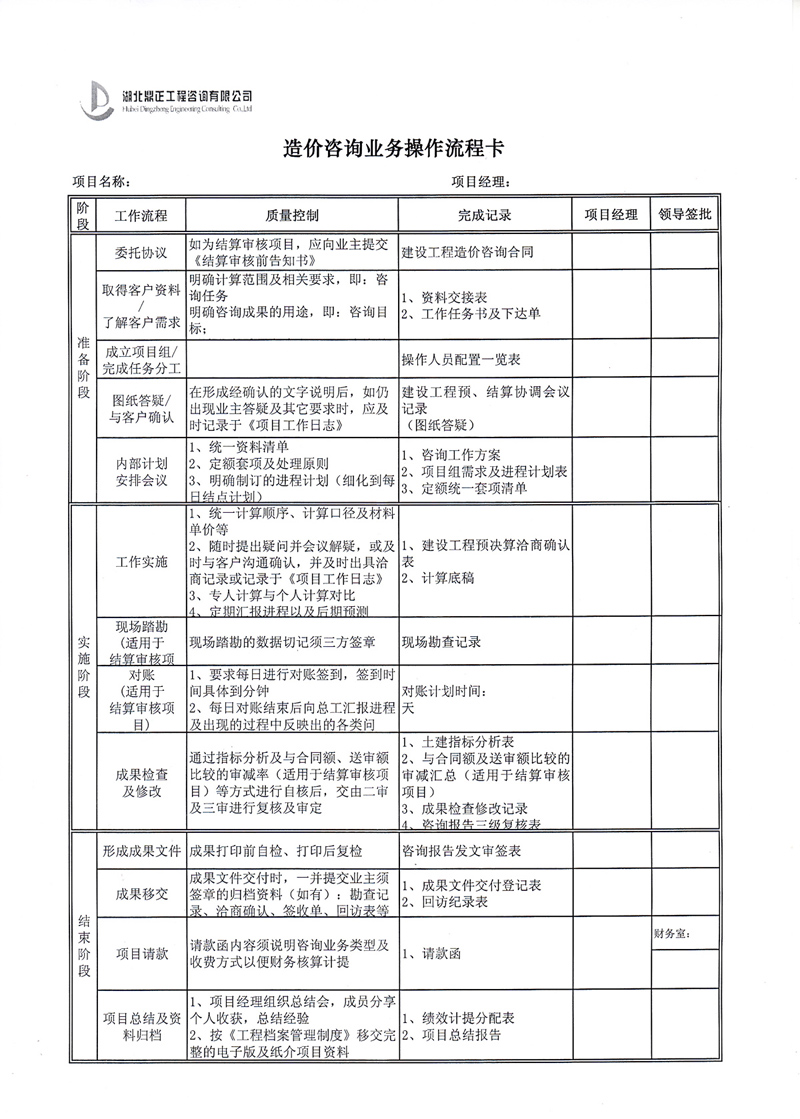 造價咨詢業(yè)務操作流程卡